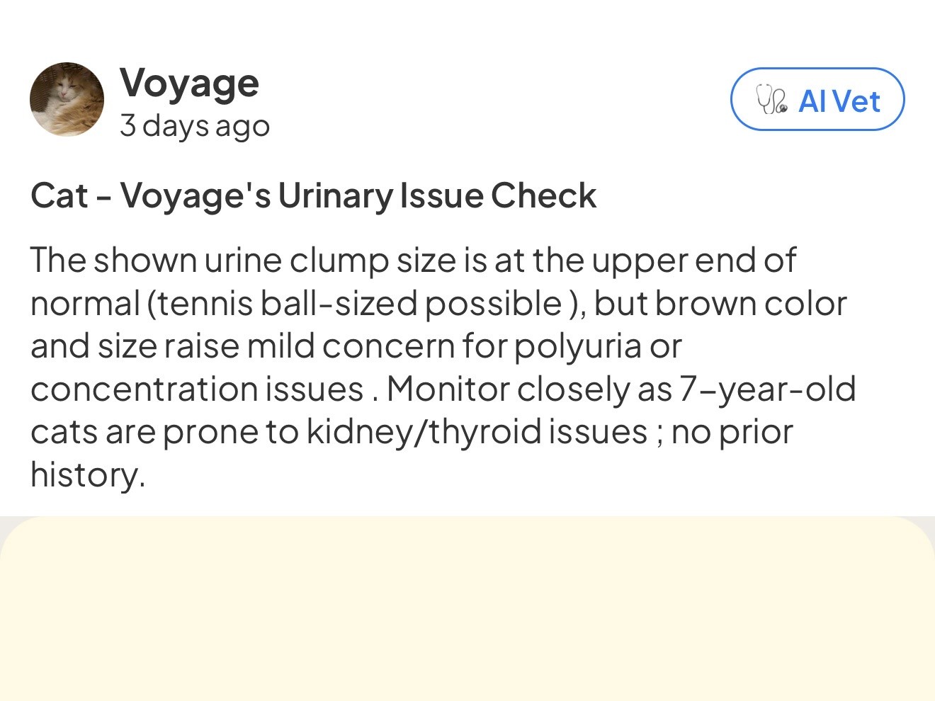 "Luna started vomiting at 2am. Voyage told me it wasn't serious and gave me a care plan. Saved me a $500 emergency visit."