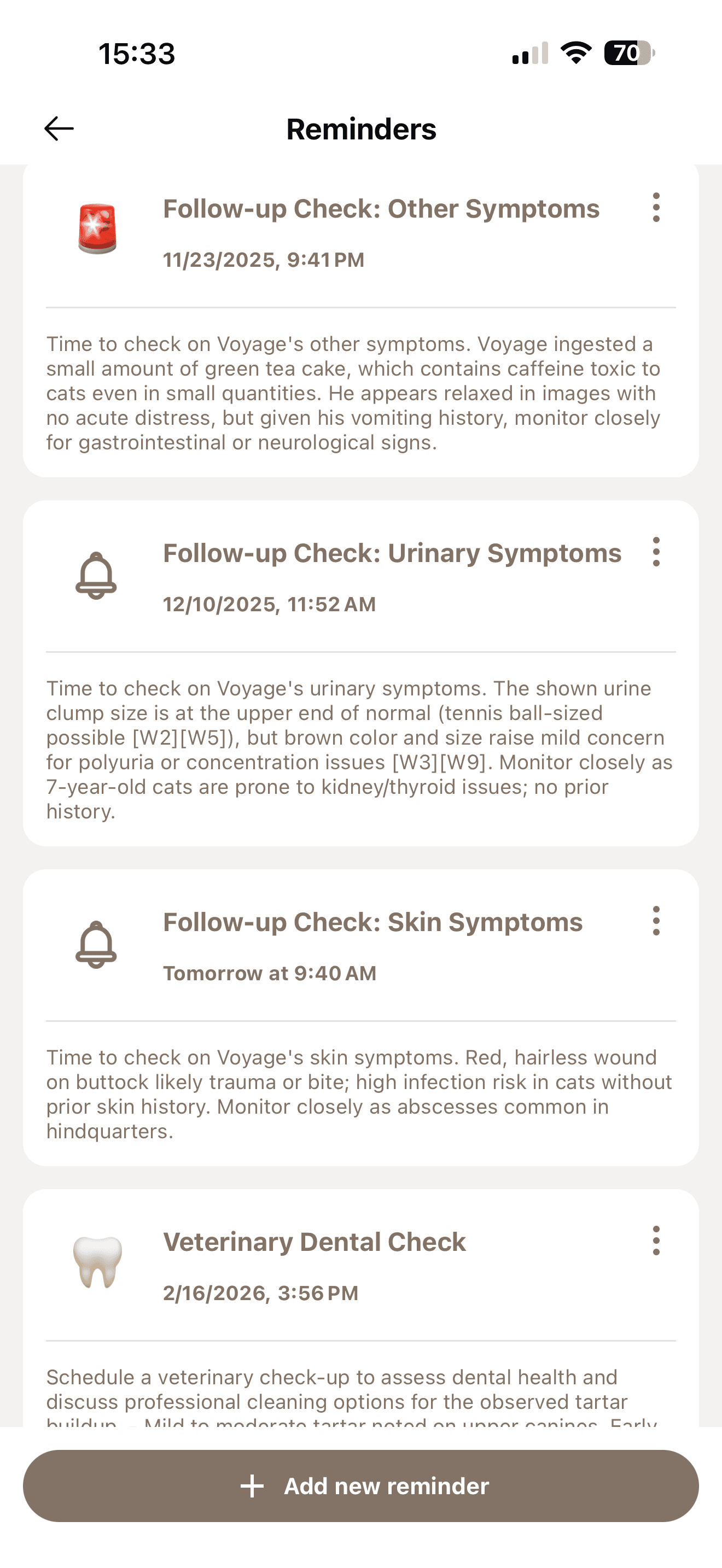 No manual tracking. Voyage automatically reminds you of follow-ups, vaccines, and check-ups.